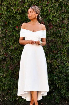 Indulge in the enchanting allure of the legendary Belina Dress by Twosisters the label. With its off-shoulder style and graceful maxi high low A-line skirt, this dress is a testament to timeless elegance and captivating charm.