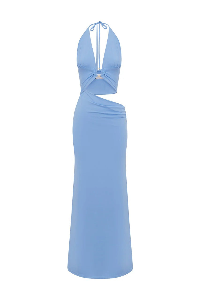A plunging neckline, luxe second skin fabrication and low waist cut out, our Lumia Halter Maxi Dress makes a statement, perfect for a late dinner reservation.