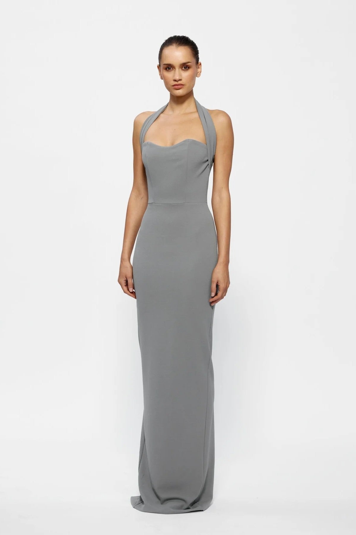 Introducing the Marian Dress, a timeless silhouette made for modern elegance. Designed with our stretch crepe that skims the body beautifully whilst creating a perfect cinch at the waist. The Marian features a classic halter bodice with a sweetheart neckline, beautifully framing the décolletage. Cut for a midi length to take you through all seasons and occasions.