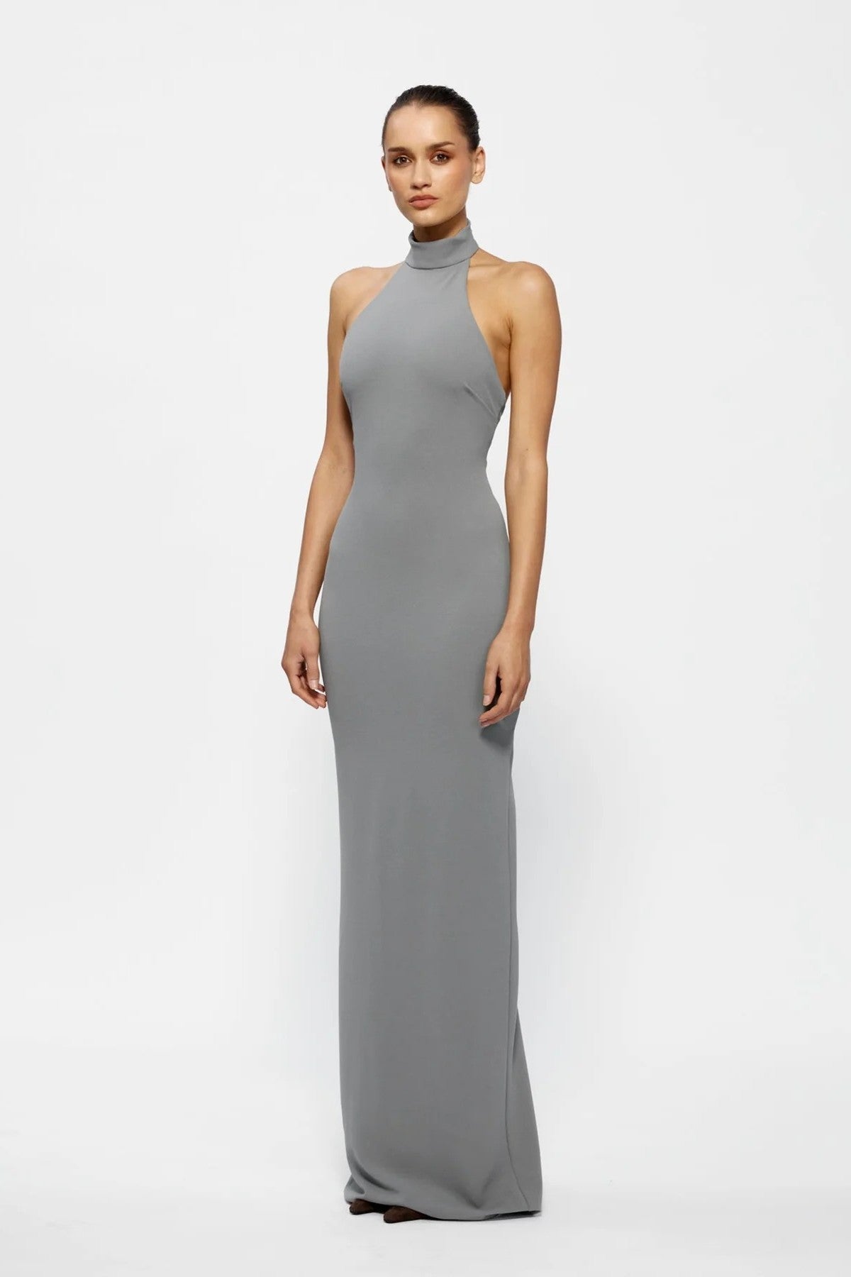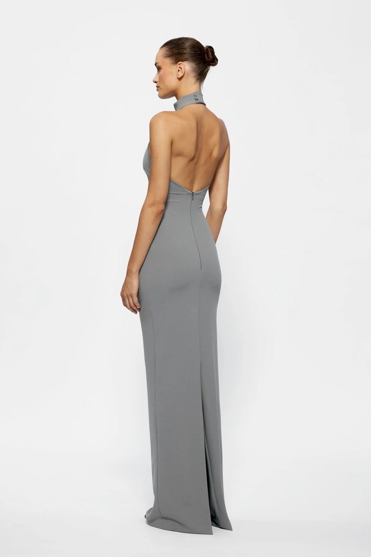 Introducing the Rhi Gown, a timeless silhouette to take you through all seasons. Detailed with an open back and a high neckline, flowing beautifully into a floor length gown. Crafted with our stretch crepe fabrication for a soft and luxe feel on the body. The Rhi Gown is the perfect ensemble to take you through special occasions and understated evenings and events.