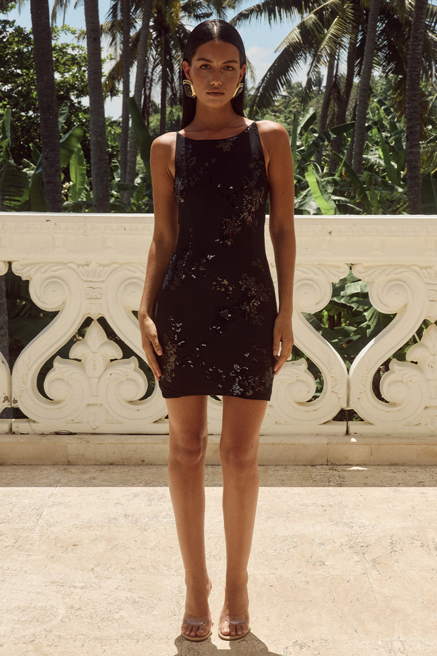 With florals made from delicate sequins, our Margie Mini Dress is sophisticated and timeless, making it a beautiful event piece.