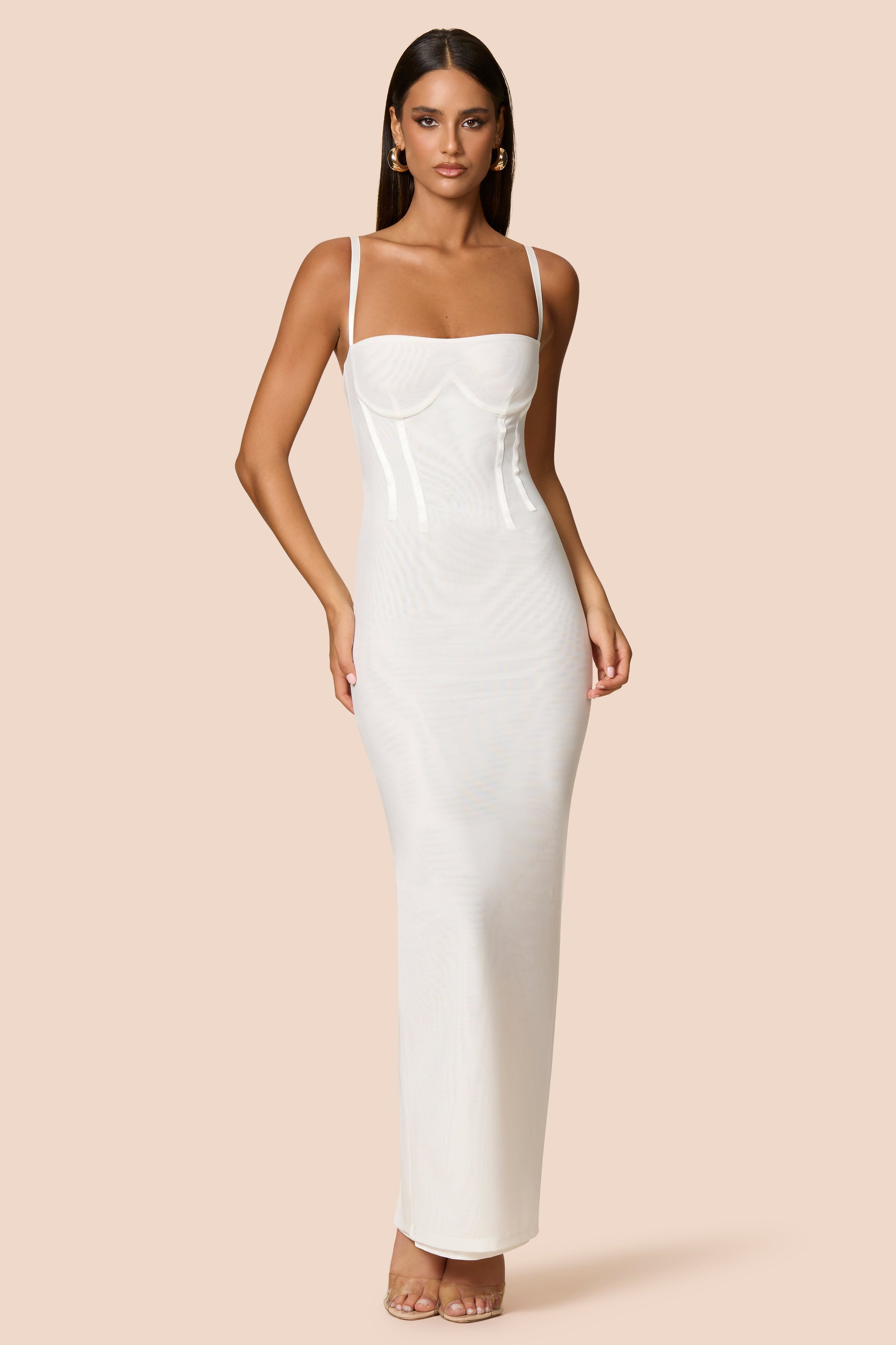 The Nookie Allegra Maxi Dress is an incredible sculpted maxi. It is crafted from a double layer of firm mesh, with underwire and contrast trim. It has an invisible zip and split at the back hem. The dress is fully lined.