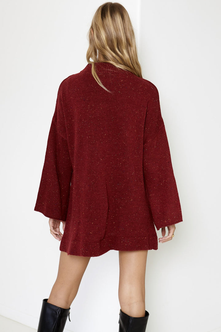 Cozy up in the Bea Jumper. This oversized jumper features a slight turtle neck with ribbed detailing and is crafted with speckle colored fabric. Easy to throw on, the Bea Jumper has the versatility to be styled on its own or style it tucked into your favourite denim for a classic winter look.